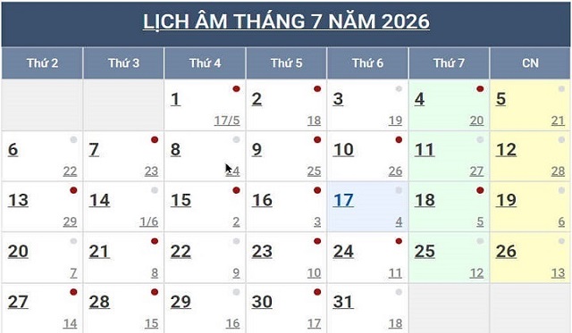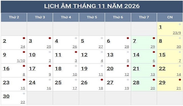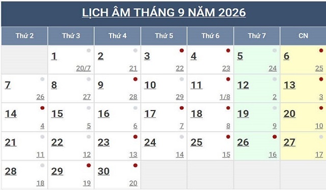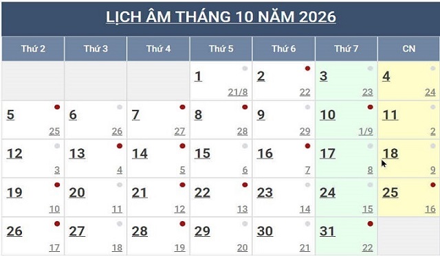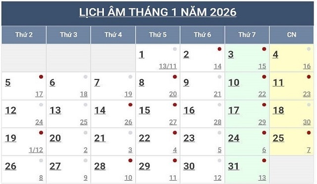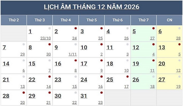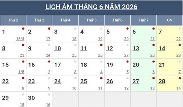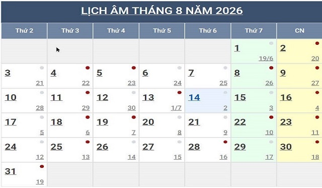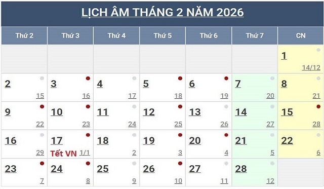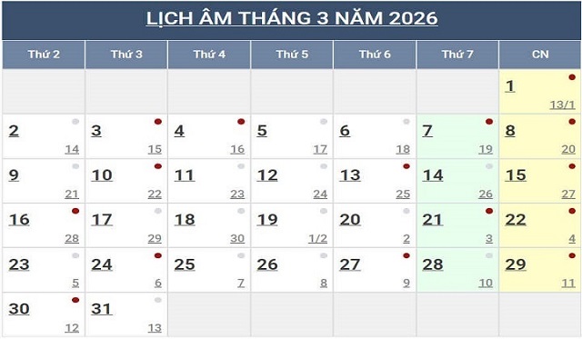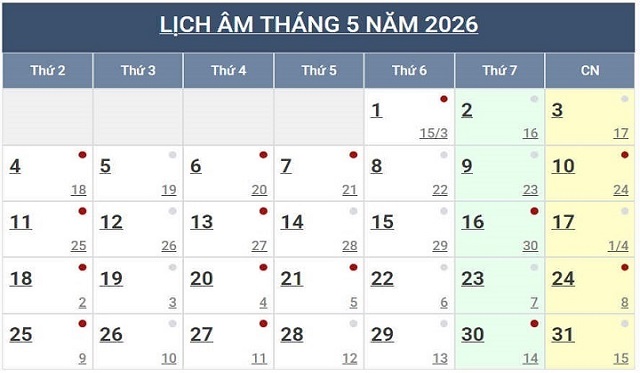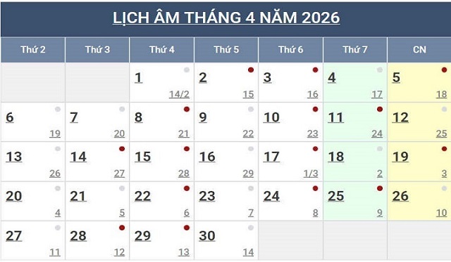 Lịch Ngày Tây và Ngày Ta 2026